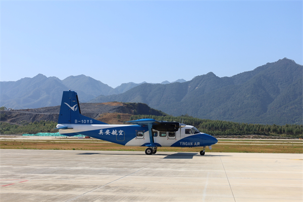 英安通航一架國產Y-12E型雙發民機降落在韶關丹霞機場