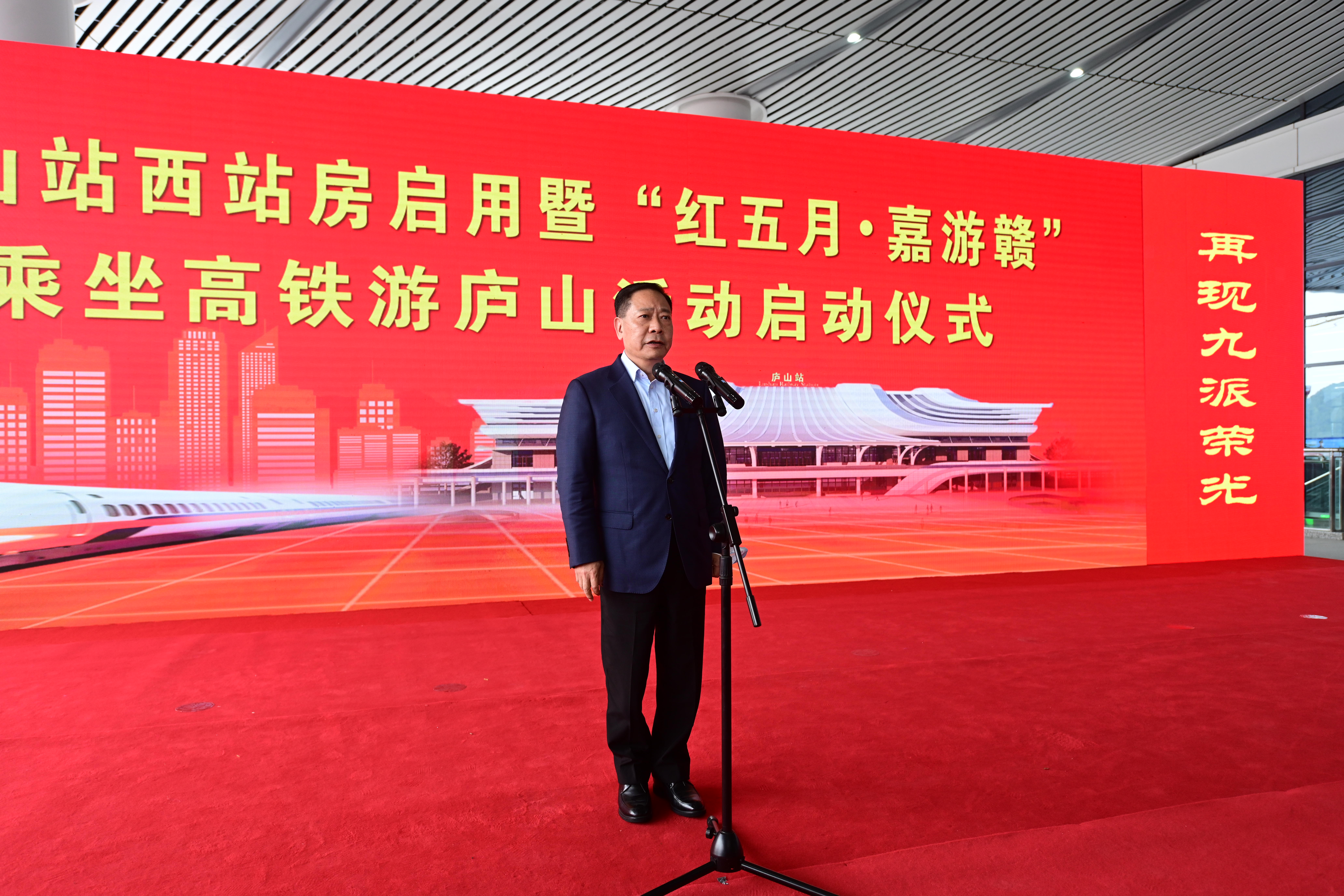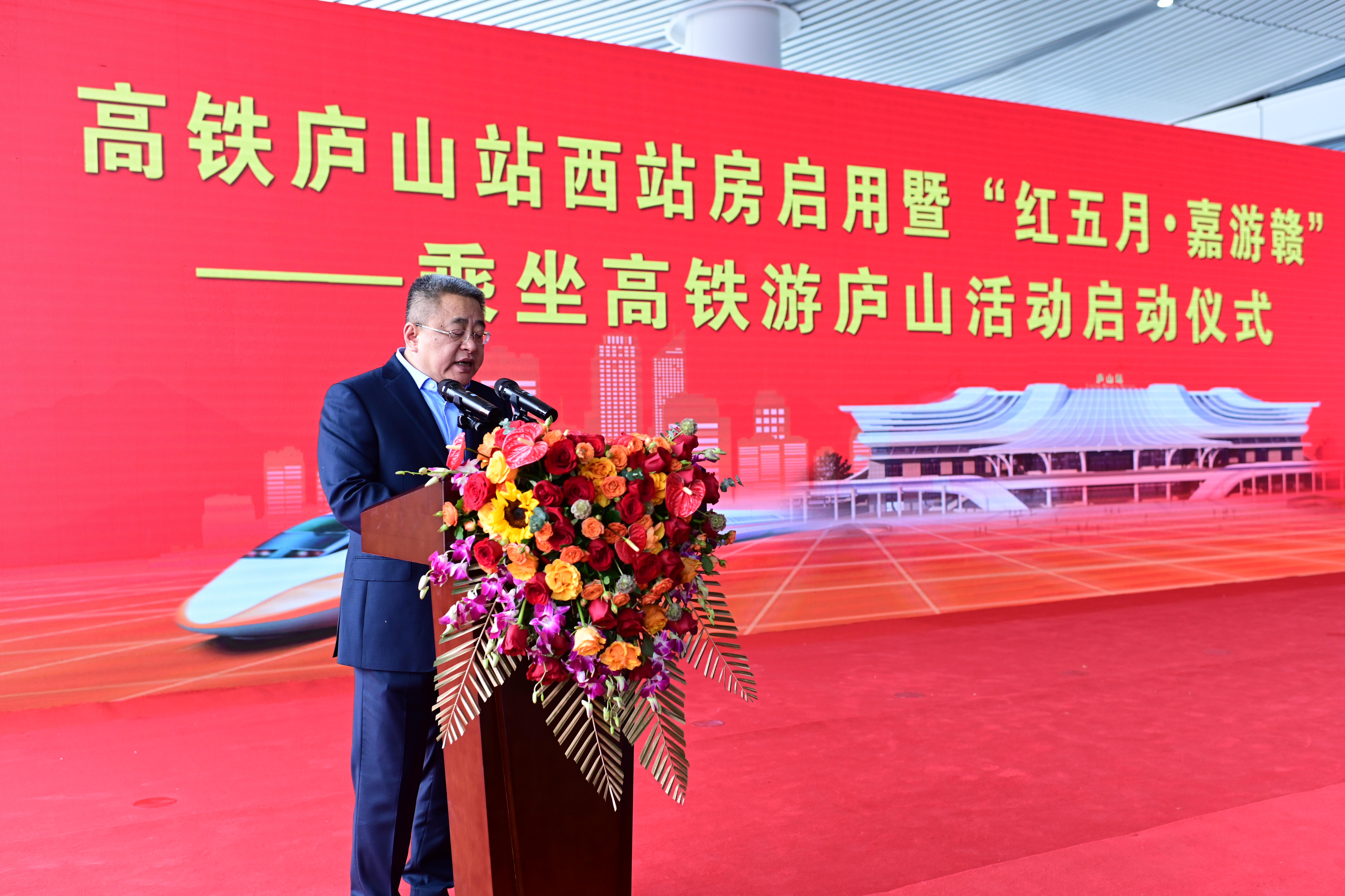 4月28日上午,江西省九江市舉辦高鐵廬山站西站房啓用暨“紅五月·嘉遊贛”--乘坐高鐵遊廬山活動儀式。