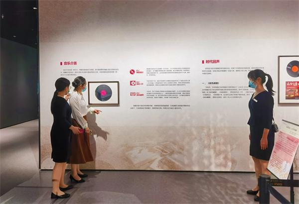 展覽展出的展品涵蓋黑膠唱片、音樂CD、磁帶、歌曲創作手稿等,展廳佈置上也應用了定向音頻科技,打造沉浸式聽覺體驗,在聆聽歌聲的參觀過程中,回顧奮鬥歷史,展望美好未來。(記者 蘇偉)