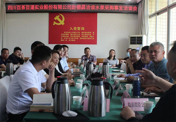 德昌縣委常委、縣紀委書記劉剛對茶百道一行的到來表示熱烈歡迎,並詳細介紹了該縣地理區位優勢、自然氣候特點、果業發展現狀等情況。他表示,“茶百道無論是從銷售規模還是企業理念都是行業內的標杆。德昌縣有良好的區位優勢和土壤氣候環境,水果品質上乘,希望能與茶百道公司達成更廣泛的合作,切實提升全縣果品產業的知名度和市場競爭力,推動德昌果品產業發展。”