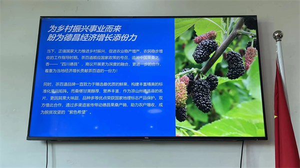 田野創新股份有限公司董事長單丹介紹,公司主要經營農產品及食品加工,多年來一直是茶百道的優秀供應商,德昌縣具有得天獨厚的自然條件和品牌優勢,桑葚品質上乘,深受市場和消費者青睞。希望通過此次考察對接搭建起德昌縣水果對外銷售管道,培育塑造德昌優質水果品牌,促進果農增收,帶動地方經濟發展。