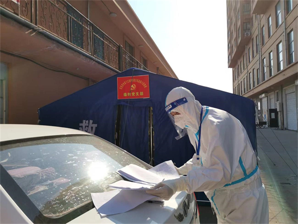 社區網格員王強說「為了早日解除疫情,讓現在這段時間的工作沒有白費力,大家不要鬆懈,再加把勁兒,一起努力再堅持一段時間。」
