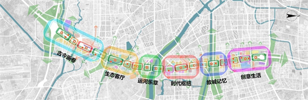 功能方面,串聯宋莊文化創意產業集聚區、副中心站綜合樞紐、行政辦公區、城市綠心、北京環球主題公園多個功能區,引導兩側城市組團功能互動發展和創新功能集聚。交通方面,強化東西向交通聯繫,構建以六環為慢行主幹道的副中心全域慢行系統。景觀方面,打造若干條自相鄰組團直達六環高線公園的魚骨狀城市活力廊道,實現周邊景觀和城市生活融為一體。