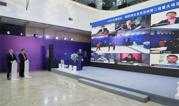 九江市委常委、政法委書記嚴盛平出席項目集中籤約、開工儀式。區委書記、鄱陽湖生態科技城黨工委書記趙和平下達開工令。區(城)領導王安定、王小平、彭青松、徐勝、邵陽、徐華安、陳立、陳典勤、朱立峯、史嵐、李蕾等出席。