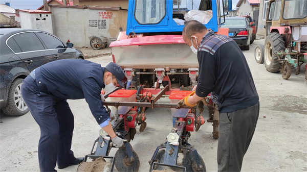 5月1日上午,平房鎮派出所民警吳東新在村屯走訪時來到楊大哥家中,看到楊大哥面露難色,經過詢問得知楊大哥這幾天正在播種玉米,可昨天下午播撒機發生了故障,撒種時斷斷續續,耽誤了農活,聯繫了維修人員,卻因為疫情封控,得3號才能來維修。春耕不等人啊,楊大哥正坐在院兒里發愁,小吳警官就來了。了解情況後,吳東新拍拍手,大哥,你家有工具麼,要不讓我看看設備到底哪兒出了問題。