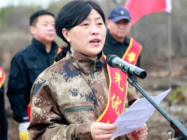 姜媛媛代表農場有限公司黨委向出席活動的勞模先優代表致辭,她表示,今天是「五一」國際勞動節,是全世界工人階級和勞動群眾的共同節日。喜逢黑龍江省第十三次黨代會隆重召開,對勞動模範、先優典型為綠化八五一一、美化八五一一的生態環境做表率、作貢獻,表示節日的問候和衷心的感謝!各位先優模範在這裏義務栽植樹木,栽下的是一片新綠,播灑的是一種精神,大家要以這次植綠為契機,帶動全場廣大職工群眾積極參與農場有限公司高質量發展的本職崗位創業建功,繼續並持續發揮各級先優模範引領、帶動和影響的作用,不僅要在今後工作中以勞模精神激勵自己,還要以勞模精神帶動和影響更多的上進人才。要以「一朝為先模 終生為標杆」的初心和追求不斷爭先,永不懈怠。農場有限公司將在全社會更加廣泛、更加深入、更加持久地宣傳勞動模範和先進工作者的先進事跡和品質精神,努力營造全員尊重勞模、關心勞模、學習勞模、爭當勞模的濃厚氛圍,使勞模精神在農場不斷發揚光大,成為激勵和推動農場有限公司高質量發展的強大動力。
