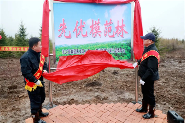 活動中,農場有限公司黨委書記、董事長、農場場長馬曙光,黨委副書記、總經理亓力共同為「先優模範林」揭牌。