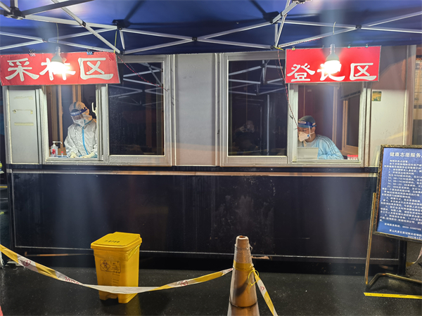 在服務點的簡易板房裏,程利萍和康岑母子倆忙碌著,配合得很默契。慢慢地,高速路口的燈光亮了起來。沒有人員前來採樣的時候,母親繼續指導兒子工作:“需要入住酒店或入園遊覽的市外遊客,還要主動給他們一個溫馨提示卡,一方面宣傳防控要求,另一方面住宿酒店或入園遊覽既要核驗“兩碼”,核酸檢測結果查詢不到的時候還要出示核酸檢測提示卡以備查驗,我們要主動為遊客著想、做好服務。”