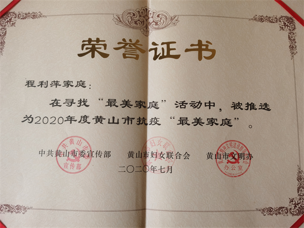 这其中,就有黃山風景區程利萍一家三口,全家齊上陣,抗疫一條心,以“家”的力量,築牢景區抗疫堅實防線,用奉獻、擔當彰顯了抗疫“最美家庭”風采,傳遞了小家大愛的堅強力量。