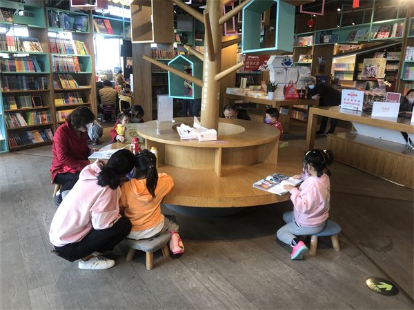 據瞭解,每到節假日,前來讀書學習的市民都會比平常多上一些,今年的五一假期自然也不例外,多以上班族、學生以及學齡前兒童為主,書店也採取多種形式,準備了一系列豐富多彩的全民閱讀推廣活動,吸引市民來這裏打卡充電。同時為保障每一位讀者的閱讀安全,每個進入書店的市民都需要佩戴口罩、出示健康碼和測量體溫。