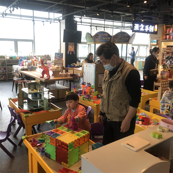 “五一爸爸媽媽放假了,我也放假了。所以帶我來新華書店玩,在這裏可以又可以做手工遊戲,還能看書,可開心啦。”舒小幼說。