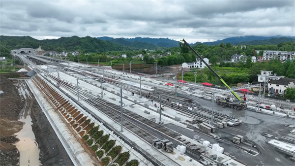 堅持交通先行,綜合立體交通網日益完善。近日,在昌景黃鐵路黟縣東站站前廣場附屬配套工程施工現場,挖掘機、打樁機等機器聲,此起彼伏。不論是在站前廣場車庫地基防水層作業面,還是在無砟軌道道岔的鋪設現場,隨處可見高鐵建設者們忙碌的身影。