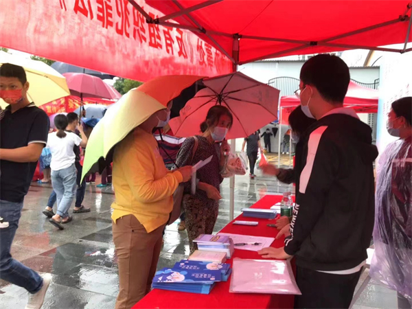 活動現場,工作人員設置了綜治、司法、信訪、勞動等普法攤位,通過解答法律諮詢、發放資料、遊戲互動、以案釋法等多種方式開展法治宣傳教育,引導居民群眾自覺學習法律知識。雖然陰雨綿綿,但群眾參與活動的熱情高漲、絡繹不絕,活動效果明顯。
