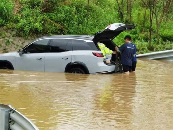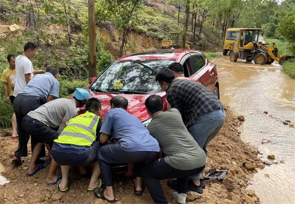 5月11日,台山市深井鎮熱心群眾合力對涉險車輛進行緊急救援