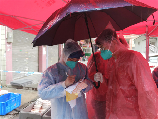 黃埔區支援白雲區抗疫工作人員冒雨開展工作