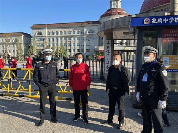 哈爾濱市公安局雙城分局交警大隊根據各學校上學放學時間表,合理分配警力,設置護學崗,在轄區的兆麟高級中學、第三中學,周家、韓甸等高中安排警力近40人、警車8台駐守,加強高峰時段學校門前交通指揮疏導工作。同時,與雙城區教育局和學校領導對接,結合各學校門前道路通行條件、在讀學生規模等實際情況,按照「對症施策」的原則,聯合校方制定校園周邊交通秩序管理工作方案。