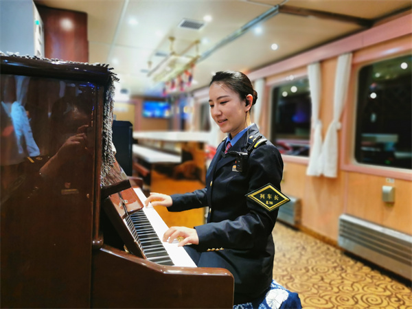 梁馨月在昆明至麗江民族文化列車上彈奏鋼琴 消除旅客旅途疲勞