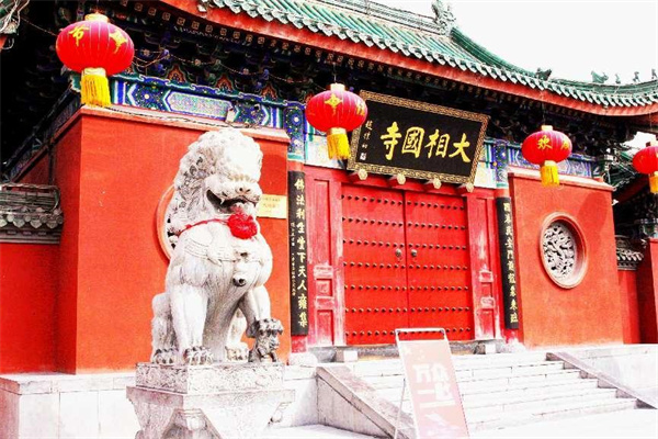 大相國寺是著名的佛教寺院,始建於北齊天保六年(公元555年),距今1460多年的歷史。原名建國寺,後唐睿宗為紀念自己由相王登上皇位而賜名。主要建築有天王殿、大雄寶殿、八角琉璃殿、藏經樓等。八角殿裏的千手千眼觀音像高7米,雕工精細,是我國古代木雕藝術的傑作。