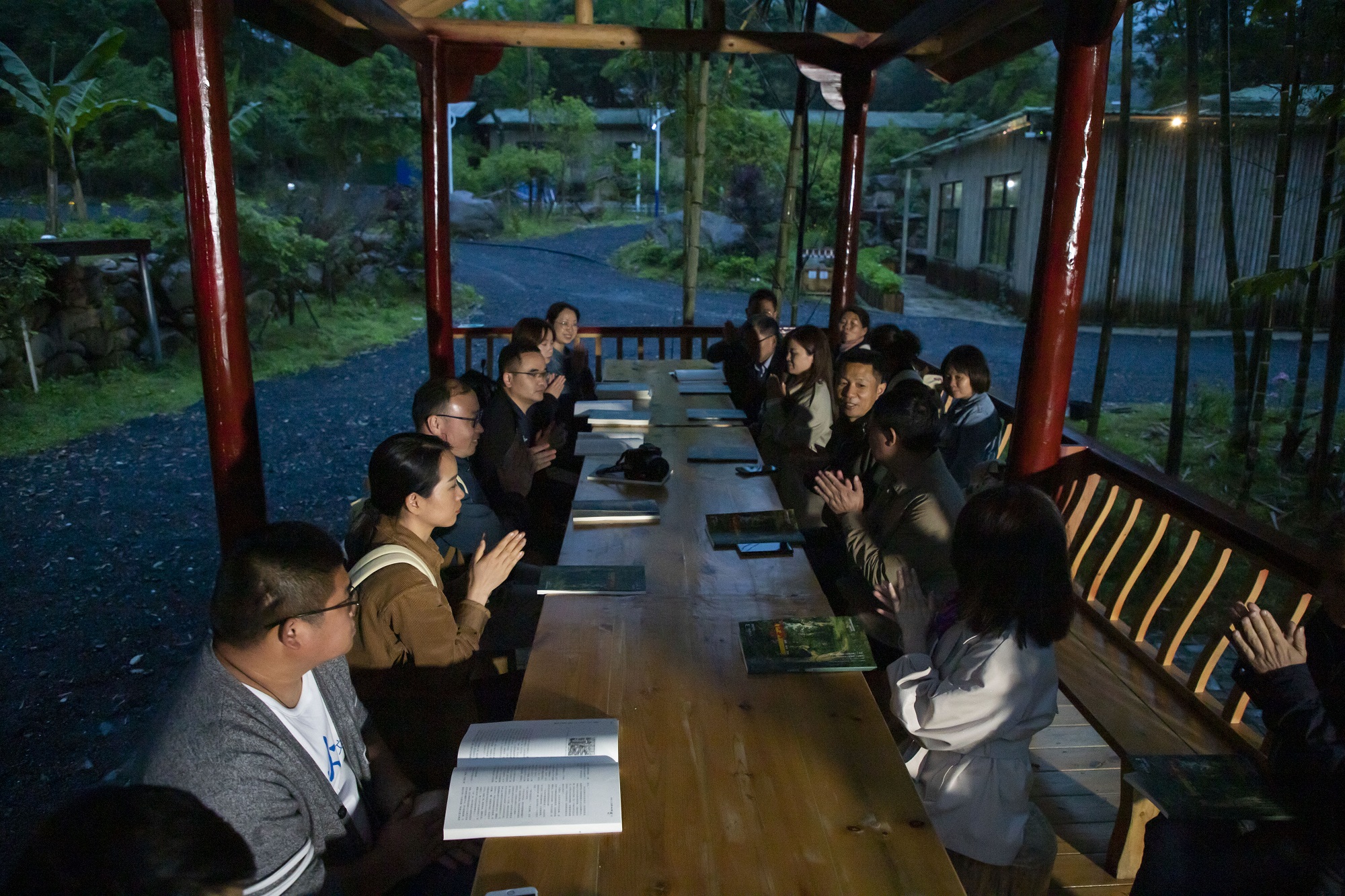 14日晚的“把《星火》讀給你聽”文藝沙龍在一座山間涼亭裡舉行,在淅淅瀝瀝的雨聲中,驛友們朗讀了自己最愛的《星火》作品,並就疫情防控常態化背景下各驛站如何開展活動進行了研討。