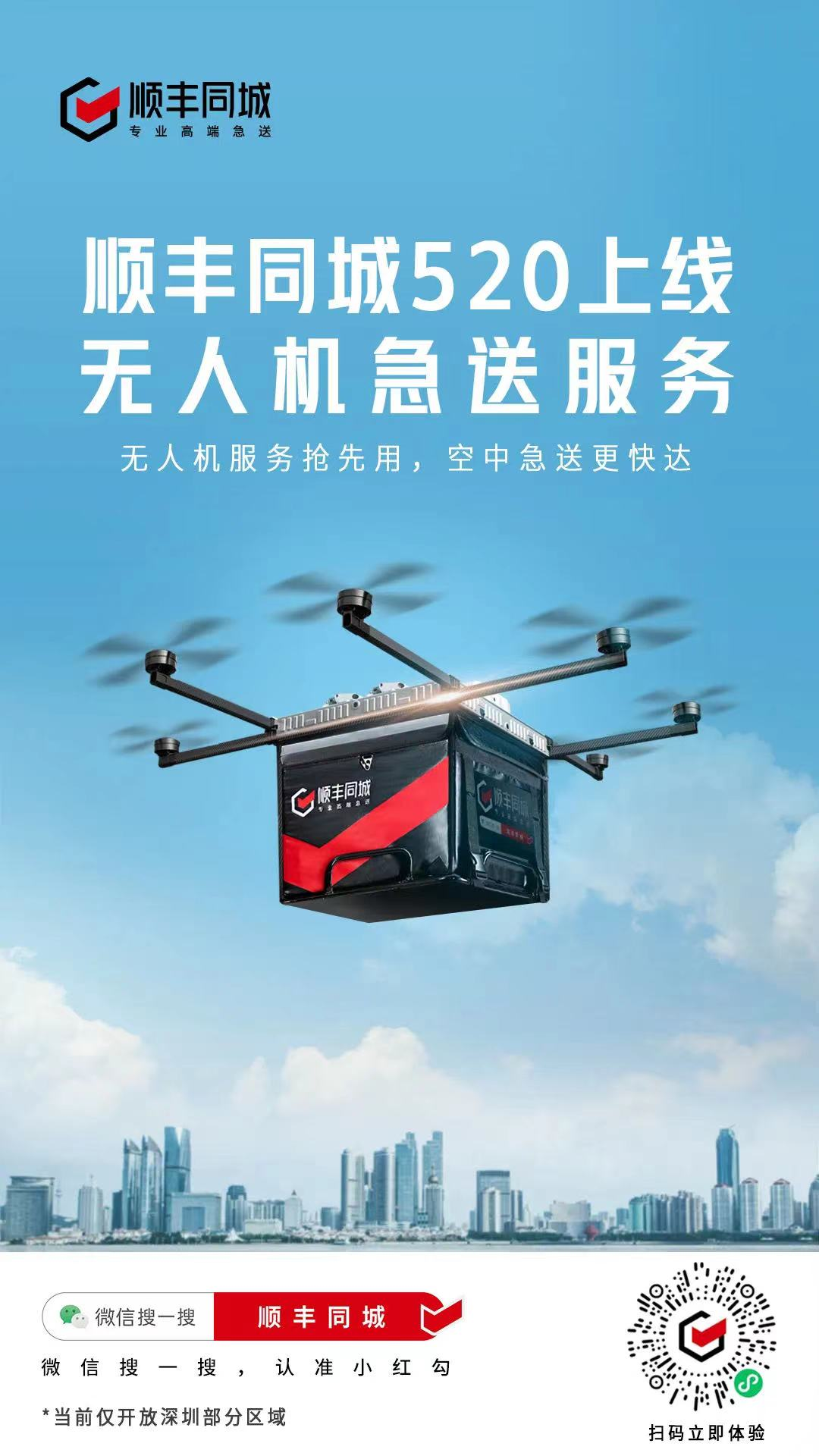 5月20日,順豐同城在深圳試點上線無人機急送服務,為深圳南山和福田部分區域的跨區配送提供無人機急送服務,用戶可通過「順豐同城」小程序或APP下單體驗。