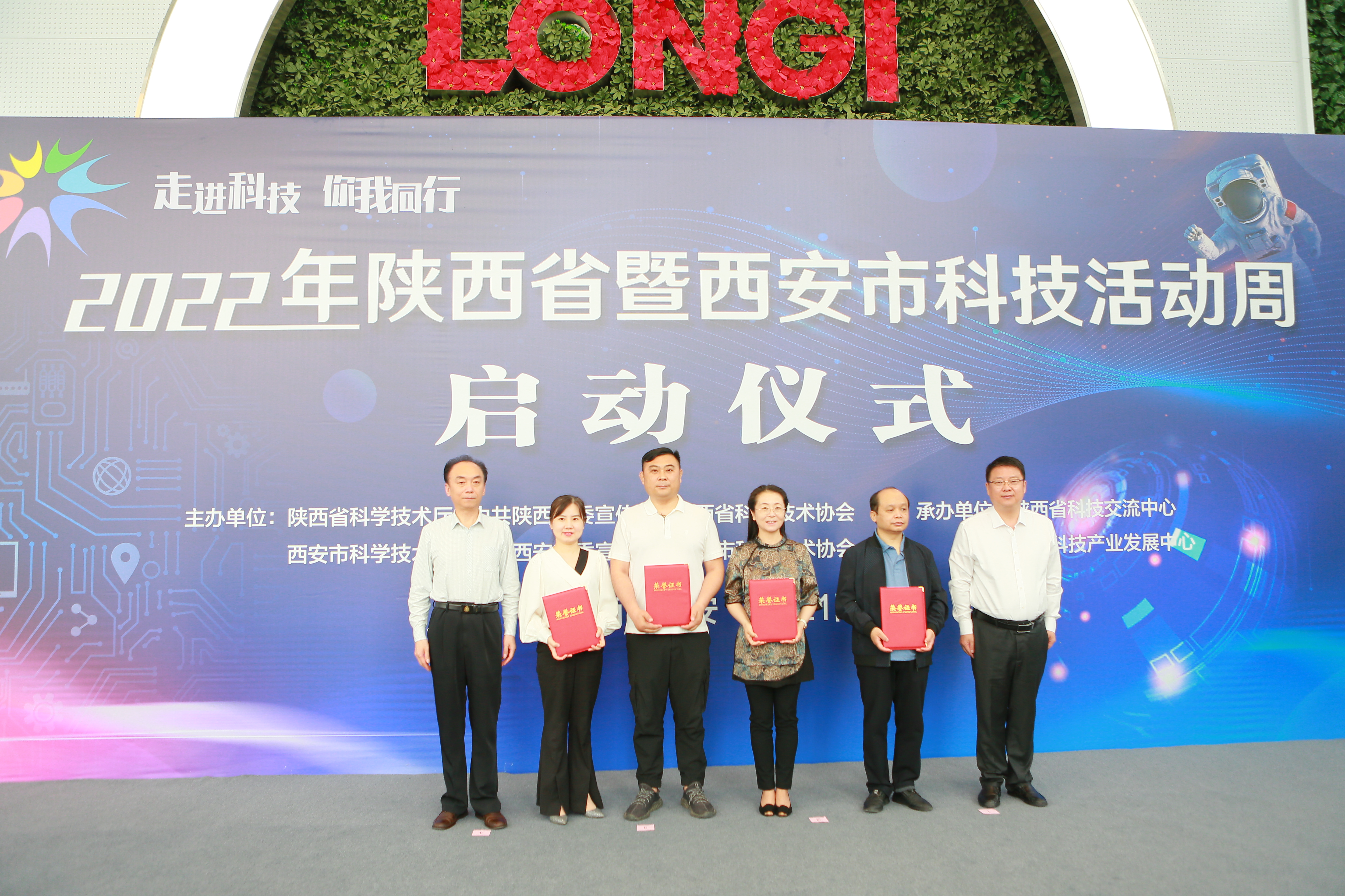 活動周啟動儀式上表彰了2020年陝西優秀科普作品作者,對陝西省科技特派員產業技術服務團進行了授旗,優秀科普作者現場向西安市經開第二學校捐贈了科普圖書,隨後與會人員共同參觀了隆基綠能智慧展覽館。