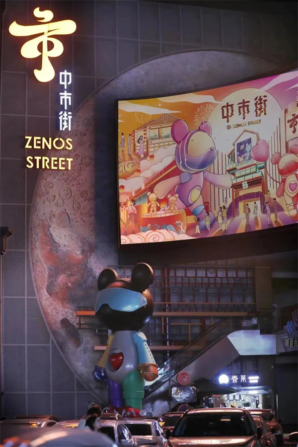 這裏,位於喧鬧繁華的合肥淮河路步行街中段,「一街兩巷」為一體的特徵明顯。穿越兼具現代與古典美的建築大門,進入緊扣「國潮」屬性的主街區中庭。這裏有造型各異、個性十足的「超集魔方區」。在「美味超食空區」,則有一排排精緻的小木屋、酷炫潮萌的街區門面擔當星際熊……