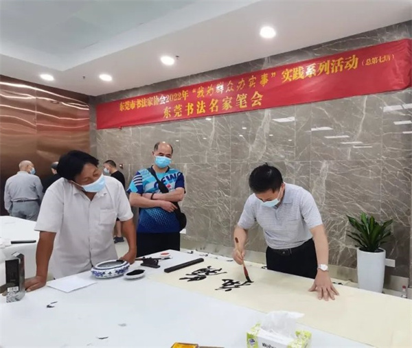 展望未來,東莞市書法家協會始終把滿足民眾精神文化需求作為書法事業發展的出發點和落腳點,通過從組織建設、隊伍建設、書法惠民、展覽比賽、精品創作、理論批評、學習交流、輿論宣傳、分會巡禮等九大方面精心謀劃反映大灣區歷史人文風貌和體現東莞本土特色的系列書藝活動,堅持以人民為中心的創作導向,拓展「東莞書法月」、「東莞篆刻周」的活動內涵和形式,積極開展東莞書法進機關、進社區、進企業、進校園、進軍營、進家庭「六進」行動,重點開展書法社會普及和精品創作,努力培養出一批德藝雙馨、全面發展的拔尖創新書法莞軍隊伍,弘揚時代主旋律,傳遞文明城市正能量,爭當東莞文藝界的排頭兵,為加快文化強市建設,為喜迎黨的二十大勝利召開,為助力東莞「品質文化之都」建設作出應有的貢獻。