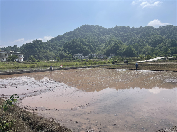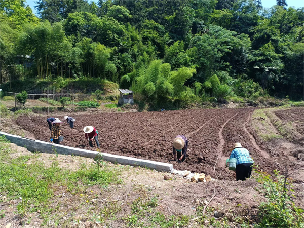 在漁亭鎮團結村乞墳村民組,農民們戴著草帽、背著背簍,彎腰在田間播種黑玉米。今年,團結村將乞墳、紅聯兩個村民組的拋荒地進行複耕複墾,通過發展30餘畝黑玉米和20餘畝水稻,著力將撂荒地進行盤活,截至目前,兩個村民組的種植工作已完成60%,預計本月底能全部種植結束。