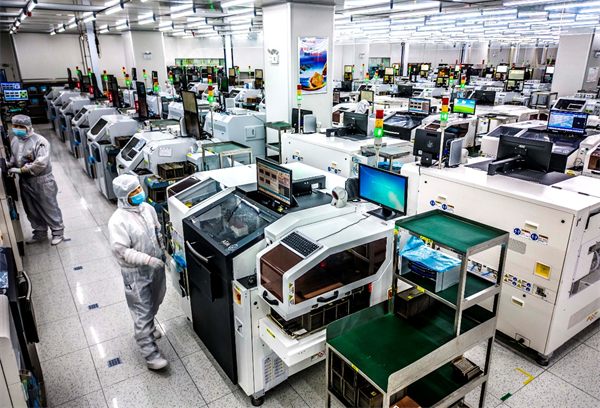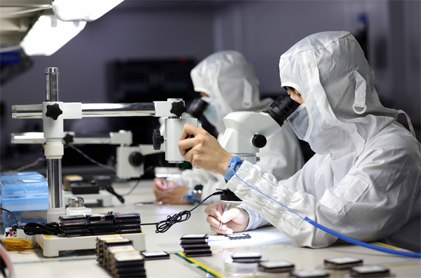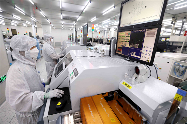 2022年5月26日,在安徽省合肥經濟技術開發區的合肥通富微電子有限公司,員工在裝片生產線上作業(解琛/攝)
