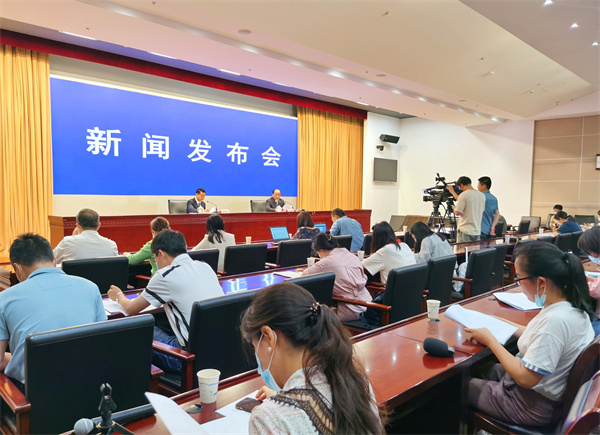 頂圖:《安徽省教育督導條例》新聞發佈會在省行政中心舉行,安徽省委宣傳部新聞發佈處處長汪曄宇(左)主持發佈會,省委教育工委委員、省教育廳總督學吳金輝介紹有關情況