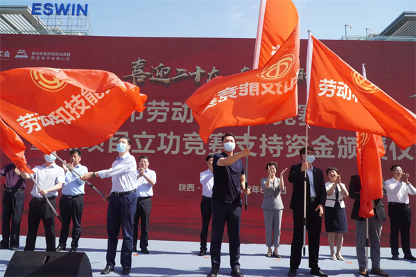 6月1日,西安市總工會在陝西省最大的科技成果轉化特區——西安秦創原集成電路產業加速器項目,舉辦「喜迎二十大 奮進新時代」西安市勞動和技能競賽啟動暨重點項目立功競賽支持資金頒授儀式。陝西省人大常委會副主任、省總工會主席郭大為宣佈競賽啟動。