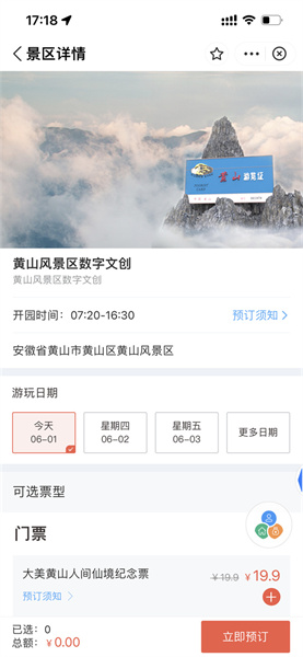 遊客可以在支付寶搜索“黃山”,進入黃山旅遊官方平臺支付寶小程式,線上購買AR數字紀念門票,購買成功後可獲得由螞蟻鏈認證的唯一身份序列號,保障每一張紀念門票都是獨一無二的珍藏之選。