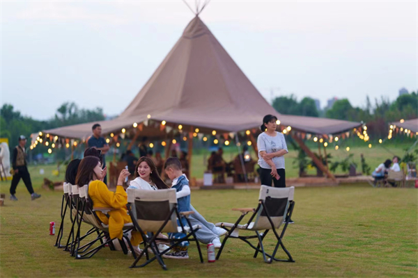 「露營不僅是帳篷加野餐,我們還要結合垂釣、飛盤等戶外活動及節假日主題,不斷豐富露營的內涵。」天際線自然營主理人徐亮認為,傳統的戶外露營正不斷疊加文旅領域新經濟、新業態,戶外露營將帶動起更廣泛、更多元的體驗經濟生態。(记者 郭代勤)