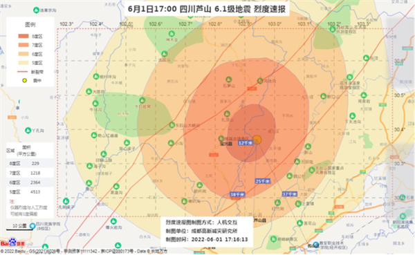 據悉, 地震發生後,成都高新減災研究所在第一時間為地震部門和應急部門提供了烈度速報圖等應急數據,為災後應急搶險救援疏通工作提供了幫助。從地震發生後已監測到餘震400餘次,其中4.5級1次,3.7級1次,目前仍要繼續關注餘震對搶險救援安全影響。