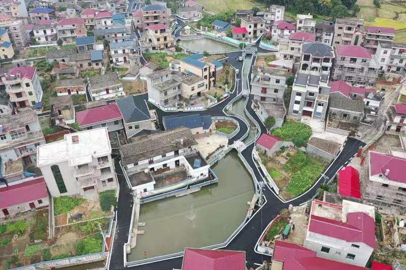 走進嶺東社區村口牌坊,道路兩旁50畝月季園花開,紅、白、綠相間,遊步道在花草間蜿蜒曲折,姑娘們在棧道觀景台拍照,留下美麗的倩影。村旁鄒公塘清水盪漾,微風習習,遊客踩着遊船湖上嬉戲;一座八卦迷宮掩映在翠竹林間。