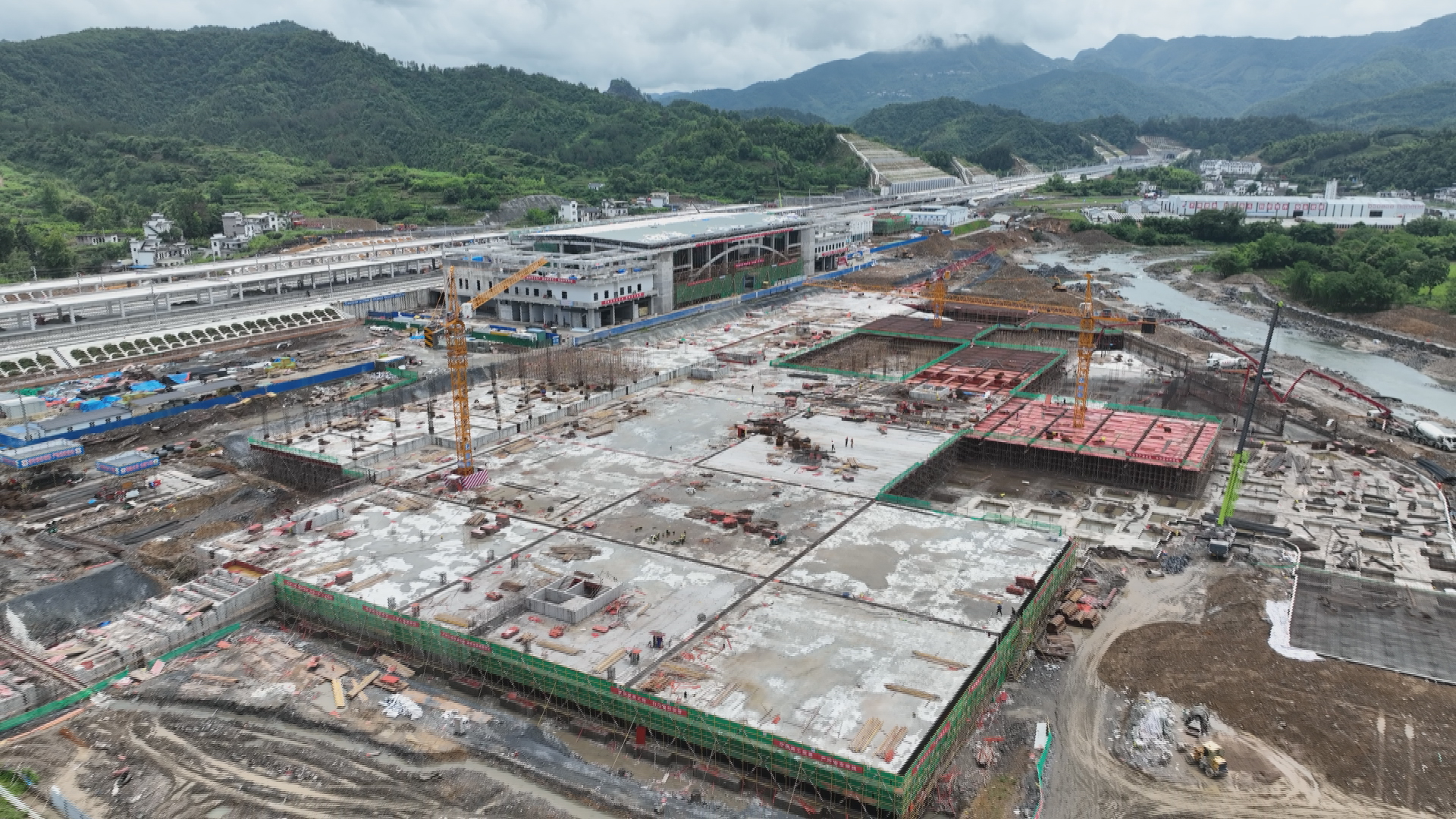 範穎介紹,黟縣東站站前廣場及附屬工程總投資額約4.09億元,目前完成投資額約1.25億元,占總投資額的31%。地下車庫土石方開挖、底板防水層全部完成,承臺閥板共計36個區塊,目前已經完成28個區塊,完成80%,頂板完成16個,區塊完成52%。目前,工程正在克服梅雨季節對施工進度的影響,想方設法保障工程進度,為昌景黃鐵路今年12月底實現開通運營奠定堅實基礎。