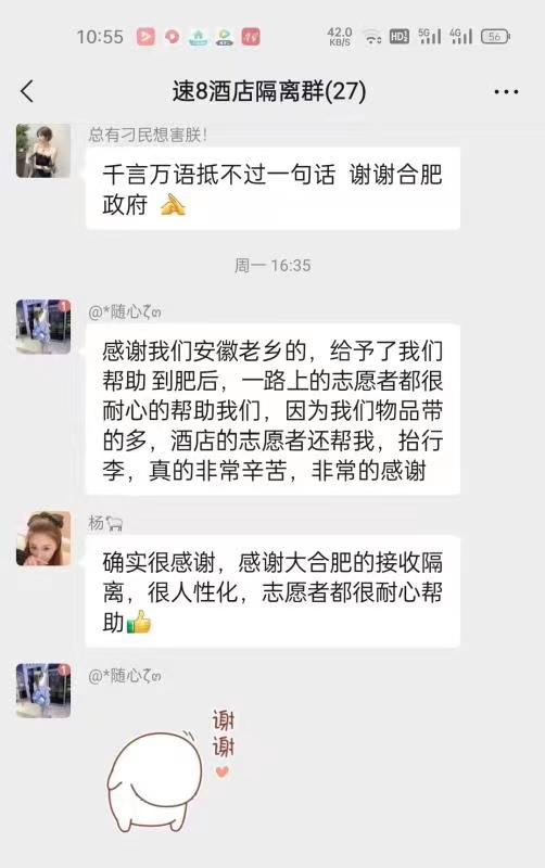 隔離病毒不隔愛。蜀山區用溫馨換溫情,用真心換真情。在速8酒店隔離點,暖心故事每天都在上演,處處充滿着感激、感動、感恩。(李之傑 王勤 孫雨靜 柏永)