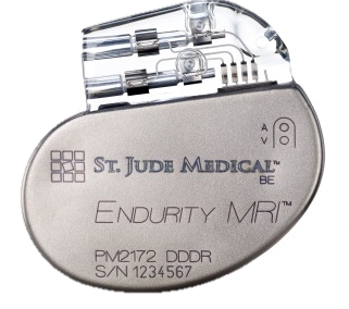 核磁共振檢查(MRI)長期以來被認為是植入傳統起搏器患者的禁忌證,主要是因為核磁檢查時會產生高強度的靜磁場、梯度磁場和射頻磁場。磁場可能會造成起搏器振動或移位,導致元器件受損或故障,導線頭端一旦溫度升高,會出現異常電刺激,導致心肌受損、心律失常。而ENDURITY MRI™起搏器是經過材料科學家、臨床醫學工程師和臨床醫師的共同努力,改進了起搏系統的材料,並且為起搏器的電極和脈衝發生器分別設計了特殊的抗磁裝置,使得整套起搏系統可以在特定場強(通常為1.5T--3.0T)的磁共振中正常工作。