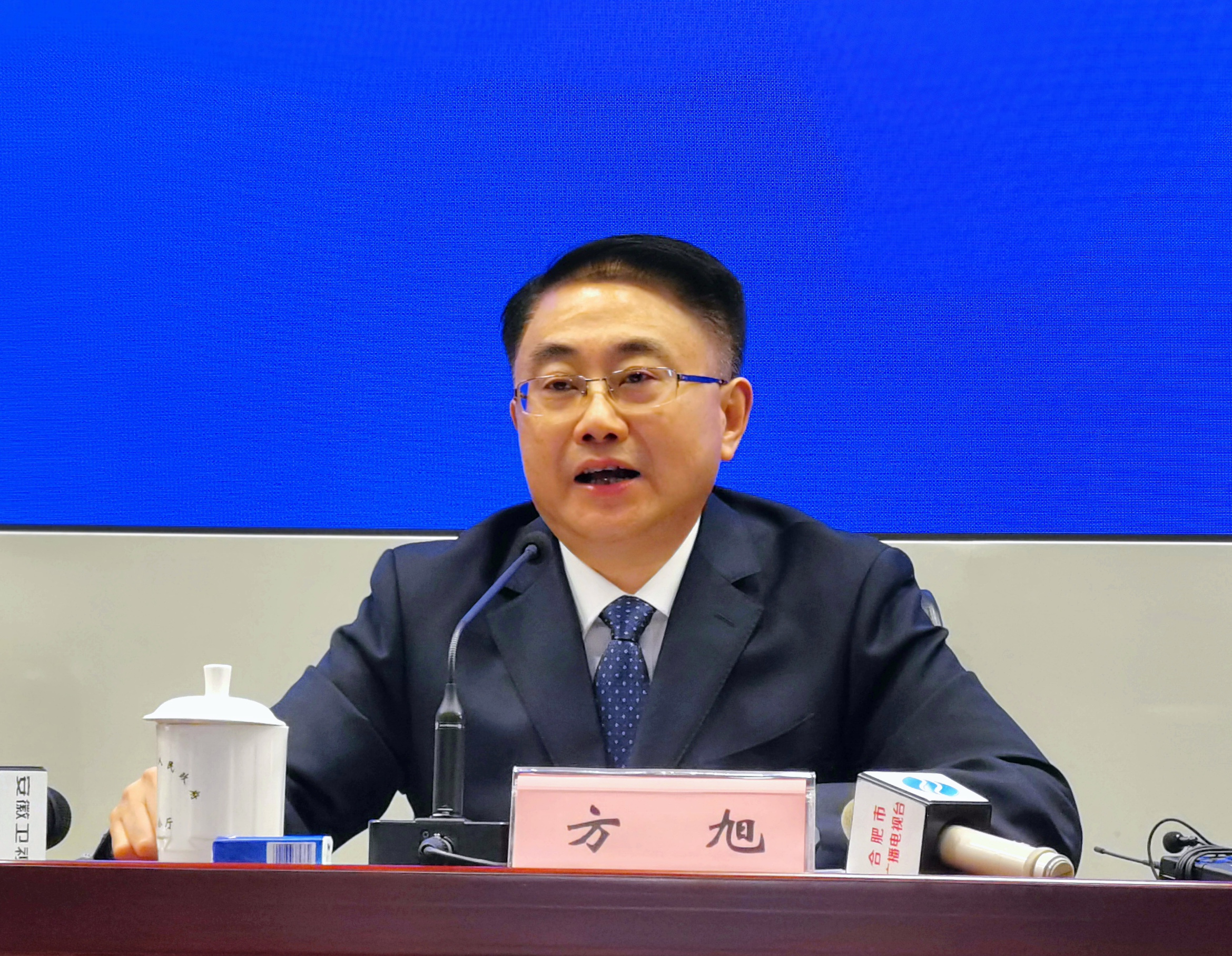 安徽省商務廳廳長方旭介紹相關情況並回答記者提問(孫軍/攝)