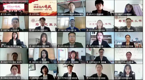 經過前期比賽的激烈角逐,哈爾濱工程大學、東北林業大學、黑龍江大學、哈爾濱商業大學、佳木斯大學、齊齊哈爾大學、東北石油大學、黑龍江科技大學、牡丹江師範學院、哈爾濱學院、牡丹江大學、鶴崗師範高等專科學校12支高校代表隊共48名師生參加線上決賽——「一戰到底」團隊必答賽。