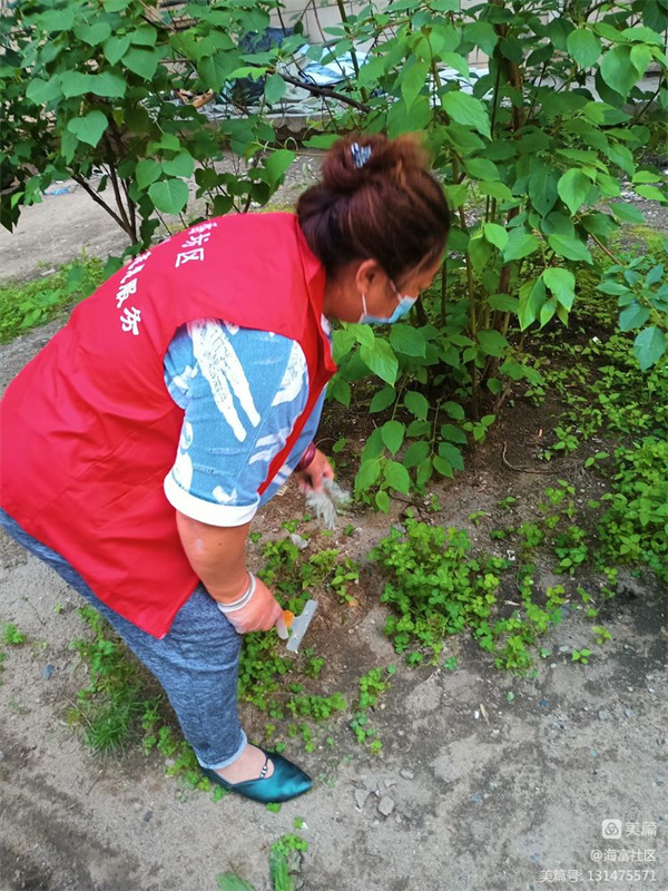 為進一步增強轄區居民生態文明意識和環境保護意識。清潔家園 美化環境,6月11日和6月12日下午,哈爾濱市香坊區海富社區組織志願者對居民生活區周圍、社區居民活動室開展環境衛生清理活動。大家將路面及綠化帶內的雜草、煙蒂、紙片、牆上小廣告、屋內屋外等各個部位進行徹底清掃,活動室內外都清理乾淨。炎熱的天氣沒有影響志願者們義務勞動的熱情,經過一個多小時的奮戰,小區與社區各處井然有序、環境煥然一新。