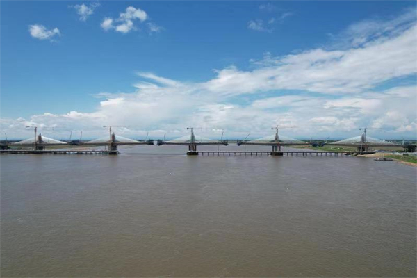 施工過程中,面對新冠疫情、高寒、凌汛等不利條件影響,項目團隊科學謀劃,通過技術創新,克服了水下全砂層超長樁施工、水下大體積承台施工、寬幅掛籃懸澆施工、斜拉索索鞍定位及索力控制等多個行業施工難題,倒排工期,如期確保了大橋邊跨合龍。首次合龍,對單個合龍程序進行了有效驗證,為全橋合龍提供了有效數據支撐和寶貴施工經驗。