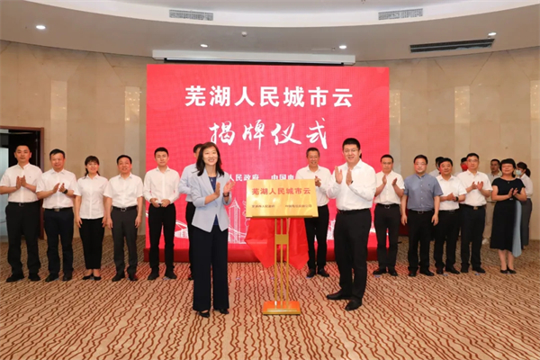 隨後,蕪湖市委書記單向前與中國電信安徽公司黨委書記、總經理劉穎共同為「蕪湖人民城市雲」揭牌。
