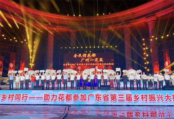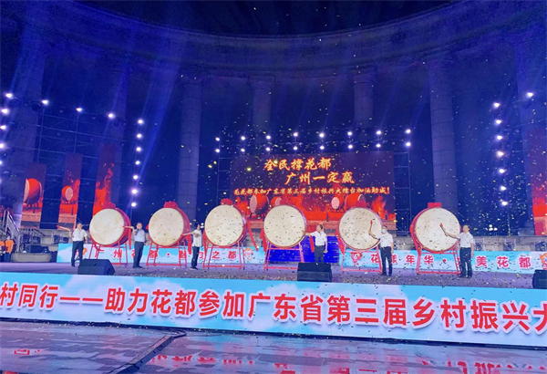 晚會中,領導嘉賓上台擂鼓宣佈花都參加廣東省第三屆鄉村振興大擂台,齊聲高呼口號「花都花都,魅力之都。醉美鄉村,看我花都。鄉村大擂台,花都最精彩!」振奮人心的口號在人群中迅速掀起熱潮,觀眾們一同吶喊,歡呼聲雷動。花都區委書記邢翔為開展「鄉村振興 百村騎行」宣傳行動的青綠生態文明志願服務隊授旗,號召全區市民齊心協力參與鄉村振興、共同創造幸福生活。