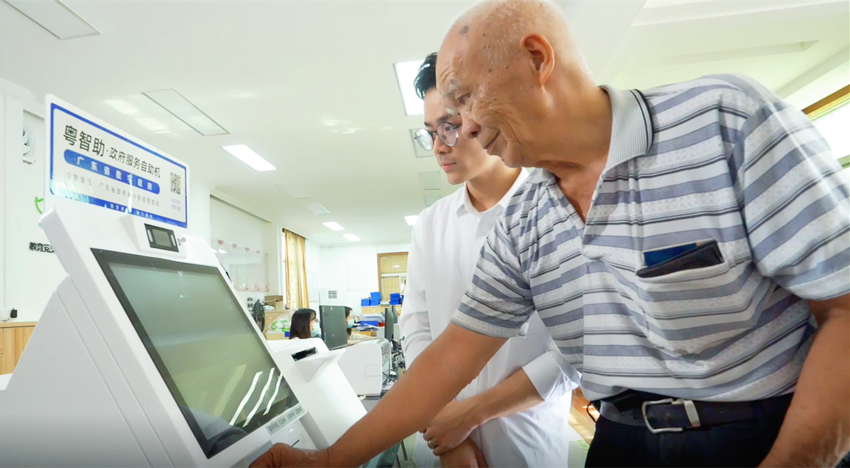 廣東省政務服務數據管理局姚進介紹,「『粵智助』是為村民群眾辦實事的項目,主要面向基層群眾,解決政府服務『最後一公里』的問題,特別是針對不會使用電腦、不會使用智能手機的老年人,「粵智助」不僅能選擇「大字號」「大圖標」的「長輩模式」,每台設備還配備了導辦員,提供專門的指引協助辦理。