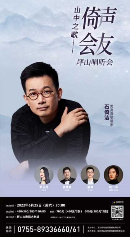 6月25日(本周六)晚,由著名男高音歌唱家石倚潔領銜、青年藝術家與研修班優秀學員聯袂呈現的石倚潔師生音樂會《山中之歌——倚聲會友坪山唱聽會》將在深圳坪山大劇院唱響。