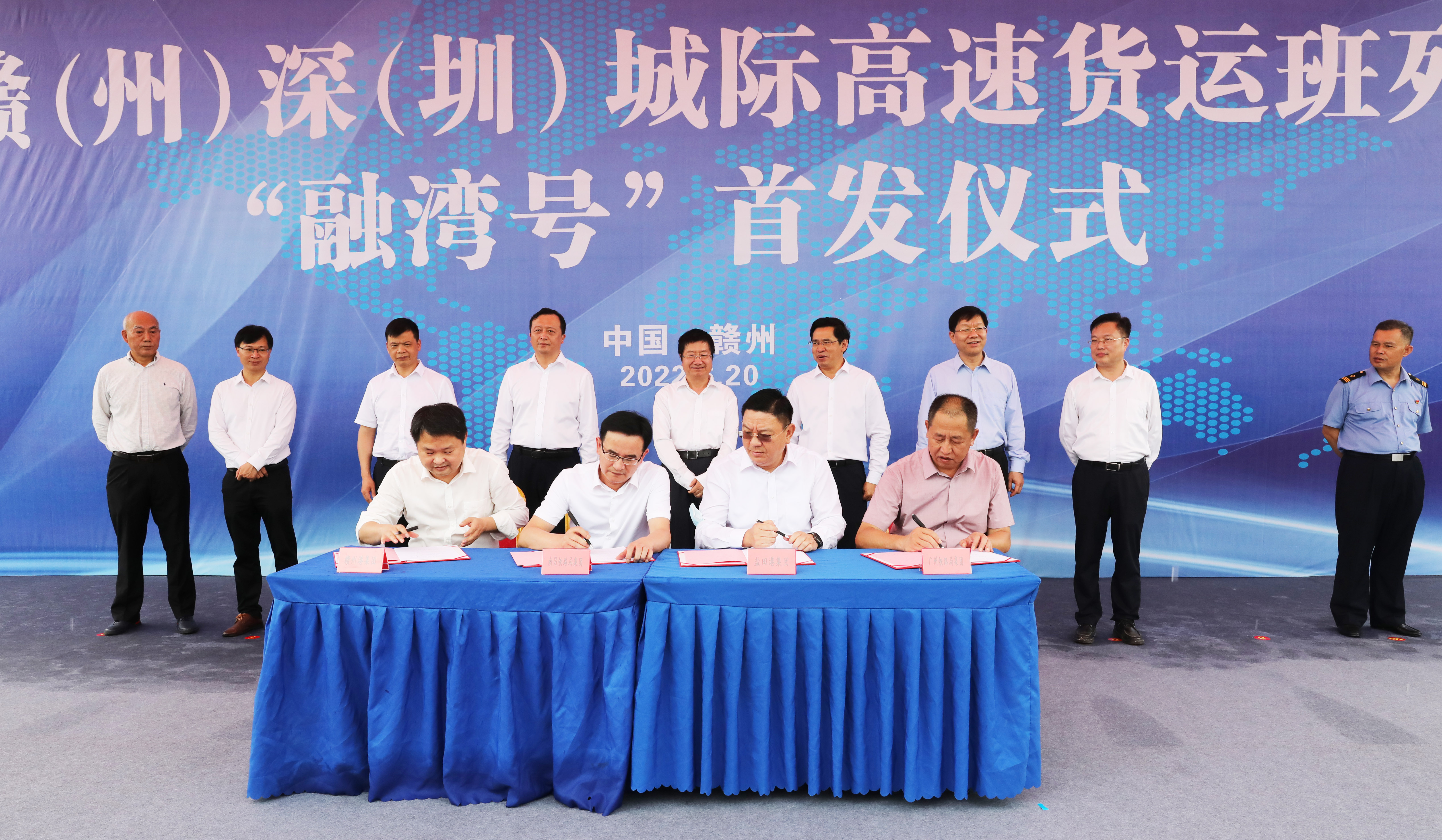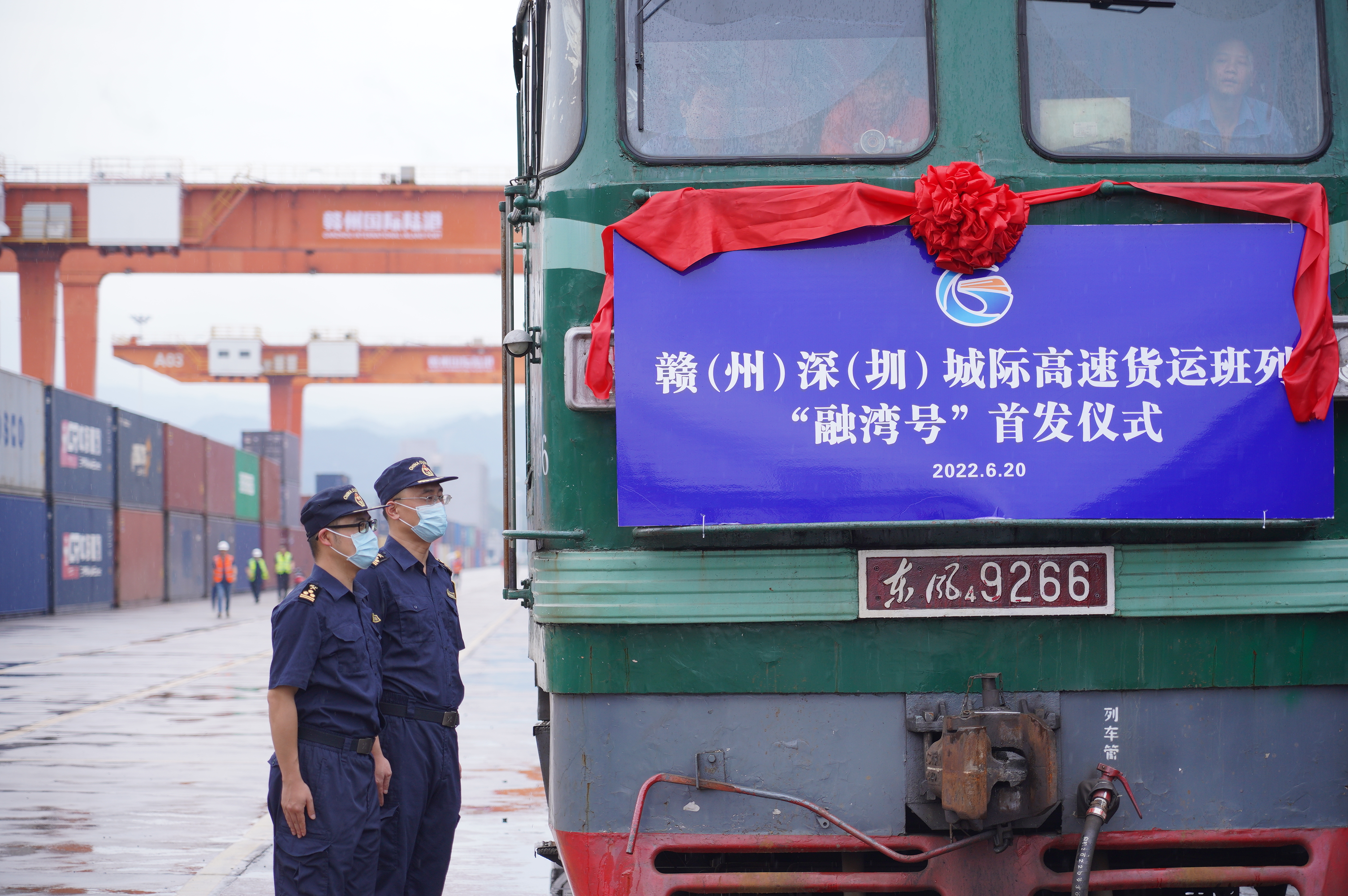 6月20日,贛州國際陸港內,隨着一聲悠長的汽笛聲響起,贛(州)深(圳)城際高速貨運班列「融灣號」正式首發開通。據悉,該班列採用特定的雙層平板,班列固定車次,中途不編組、不停留,全程運行平均時間將由原來的12小時壓縮至6小時,真正實現貨運班列公交化、快捷化,將有效提升贛州及周邊進出口企業物流時效,推動贛州深度對接融入粵港澳大灣區,助推贛州國際陸港真正打造成為樞紐港、物流港和貿易港。