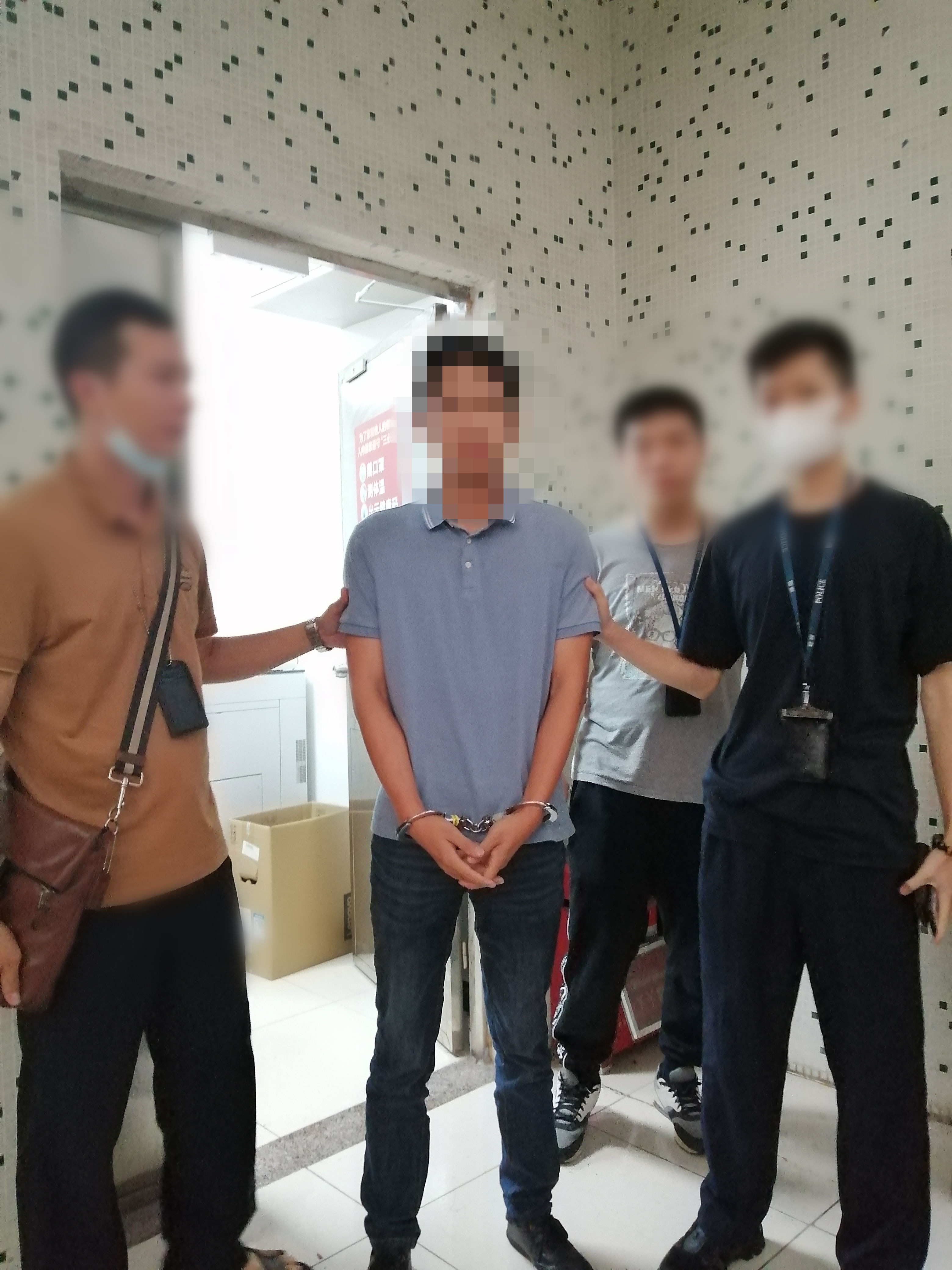江門警方偵破一宗引誘老年人投資的非法吸收公眾存款案,江門警方抓捕嫌疑人現場。