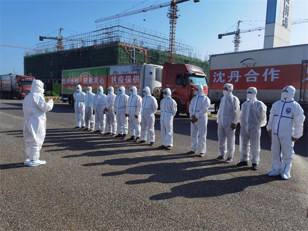 瀋陽市本次支援丹東市生活必需品包含大米1.5萬袋,75噸;麵粉1.5萬袋,75噸;食用油1.5萬桶,27噸;牛奶3萬箱,90噸,分別由瀋陽信昌糧食貿易有限公司、遼寧華潤萬家生活超市有限公司、富虹集團油品有限公司和遼寧越秀輝山控股股份有限公司等重點生產和流通保供企業連夜生產、加工、裝運供應。