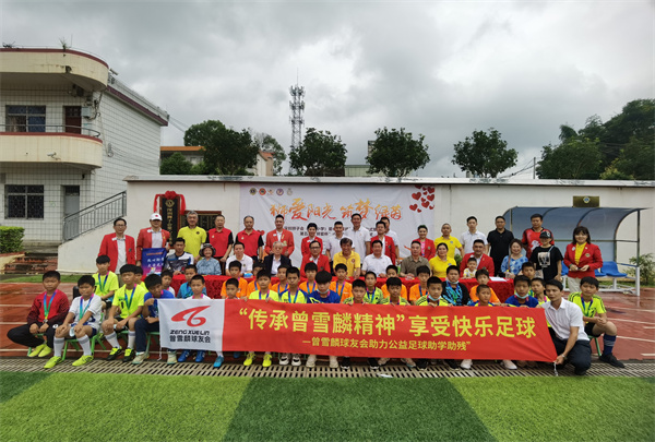 近日,在廣東河源龍川鶴市鎮鶴鳴學校新落成的足球場上,舉行了一場「獅愛陽光.築夢綠茵」——深圳獅子會愛心足球場揭牌啟用儀式暨鶴市鎮第五屆「獅愛杯」小學生足球賽頒獎捐贈儀式。本次公益足球助學活動可謂陣容強大,不單有足壇名宿、原廣東省體育局局長董良田親臨指導,更有被譽為「神奇小子」的獨腿球王殘疾人運動員何憶義閃亮登場!深圳獅子會由彭道堅候任會長親自帶隊,鶴市鎮中心小學校長黃水平,鶴市鎮河布村書記吳周琴,鶴鳴學校校長鍾成文以及學校的教職員工,大佳小學、鶴市小學、鶴鳴學校的三支校足球隊的36名小隊員共同作為被捐贈方代表參加並見證了這充滿愛與激情的捐贈儀式和助學活動。